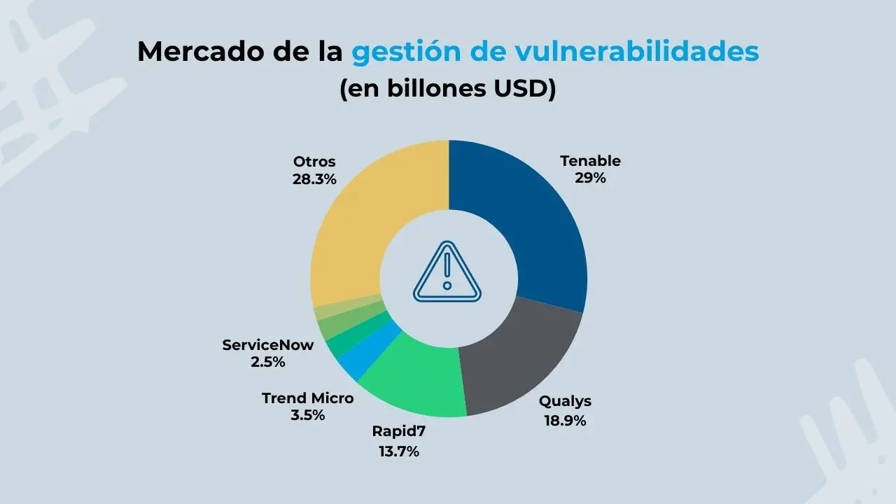 Tal y como recoge el informe Worldwide Device Vulnerability Management Market Shares de IDC, hay tres jugadores clave dentro del mercado de gestión de vulnerabilidades: Tenable, Qualys y Rapid7. De hecho, entre los tres acaparan un 61.6% del sector.