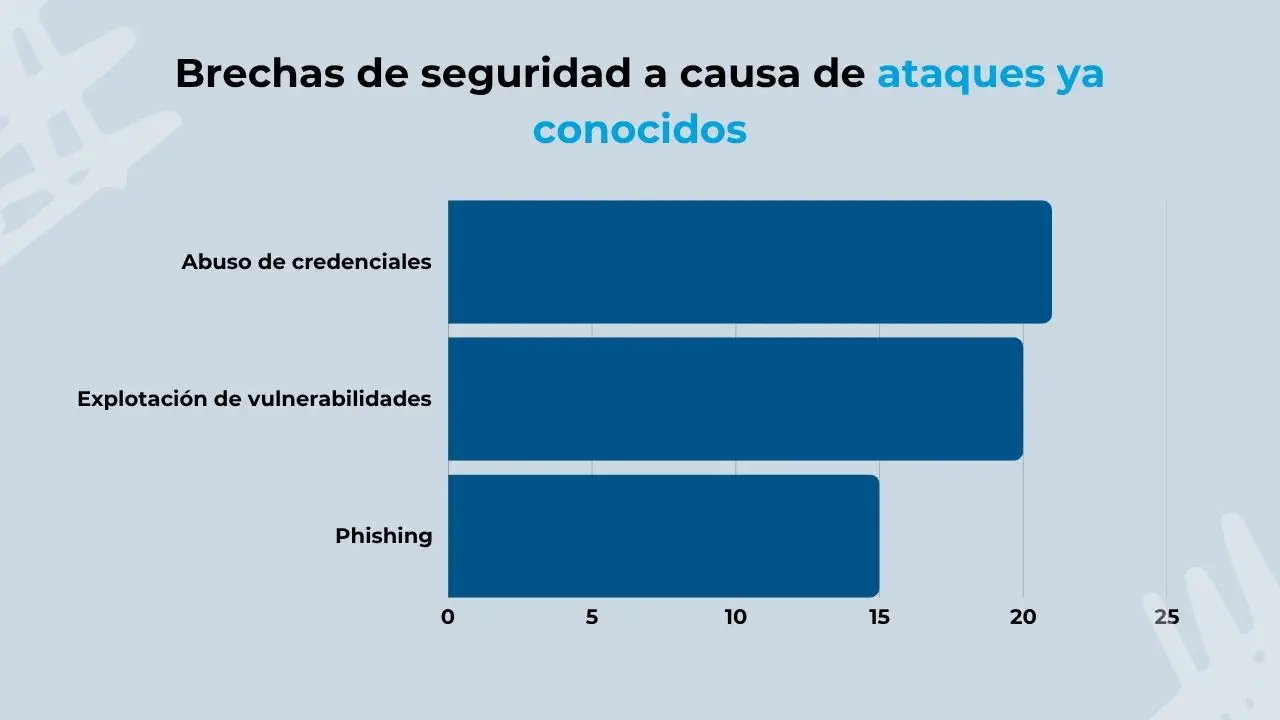 - El 20% de las brechas de seguridad son fruto de vulnerabilidades conocidas. (Verizon)
